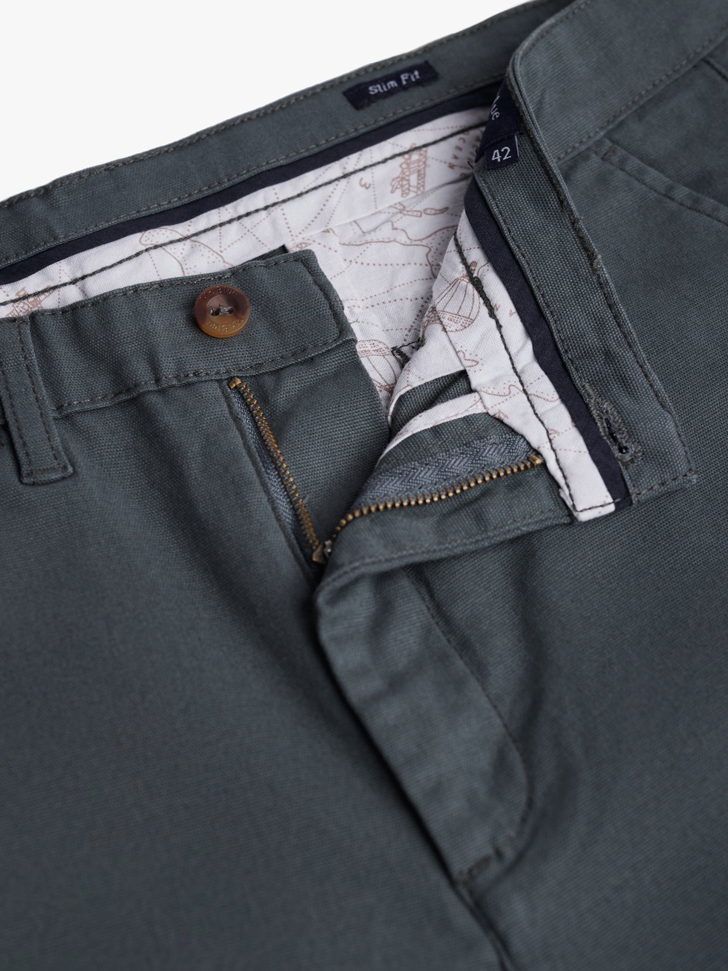 Calças Chinos Slim Fit Dobby Verdes De Algodão Lisas