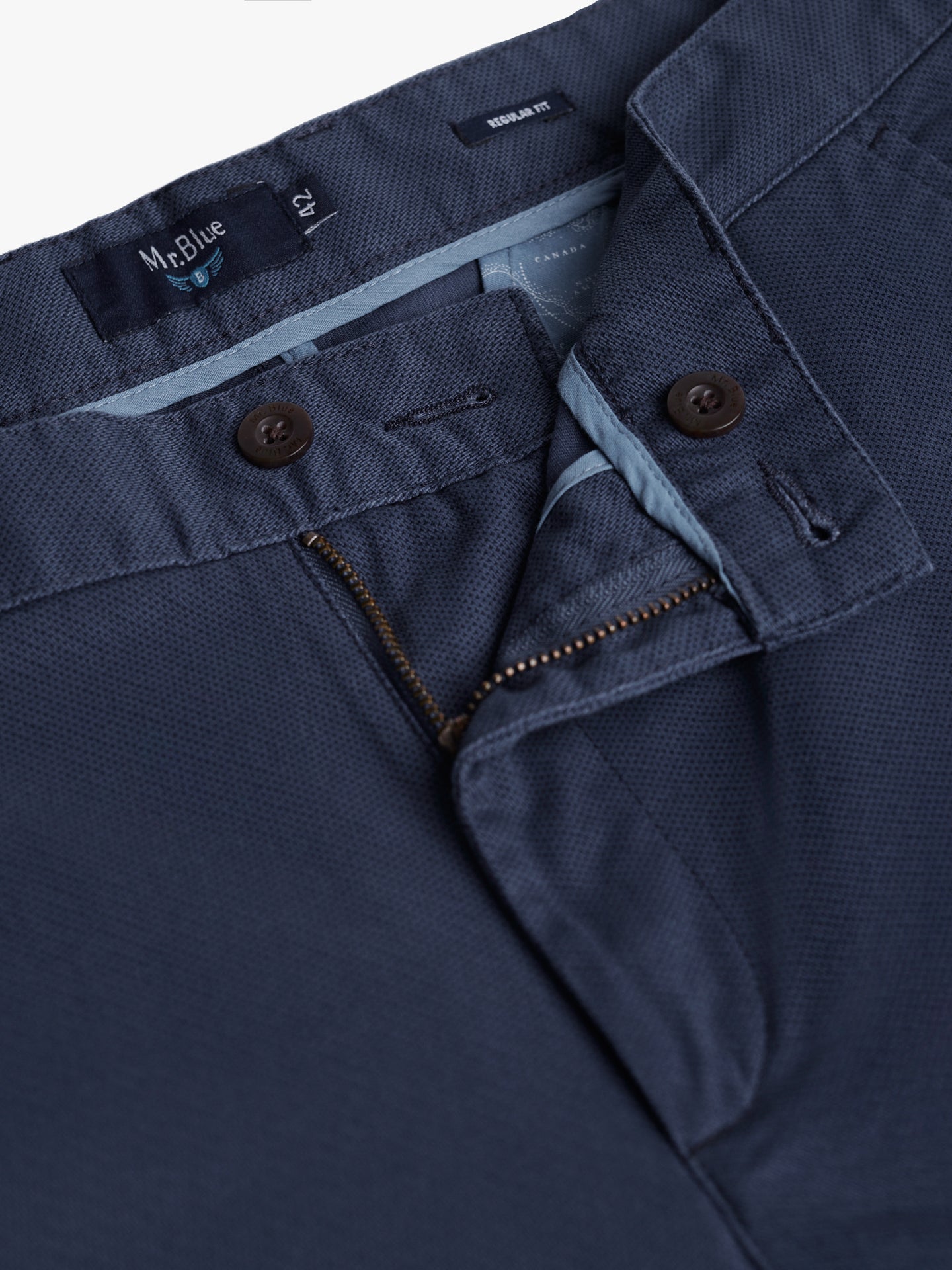 Calças Chinos Regular Fit Twill Azuis De Algodão Com Padrão