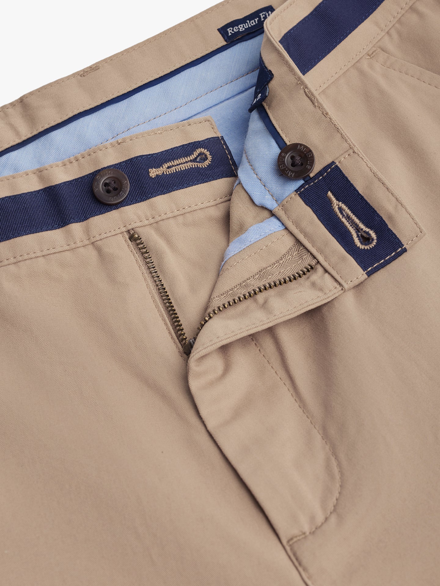 Calças Regular Fit Beges Algodão