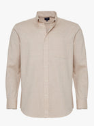 Camisa Regular Fit Oxford Bege Manga Comprida Com Bolso Lisa
