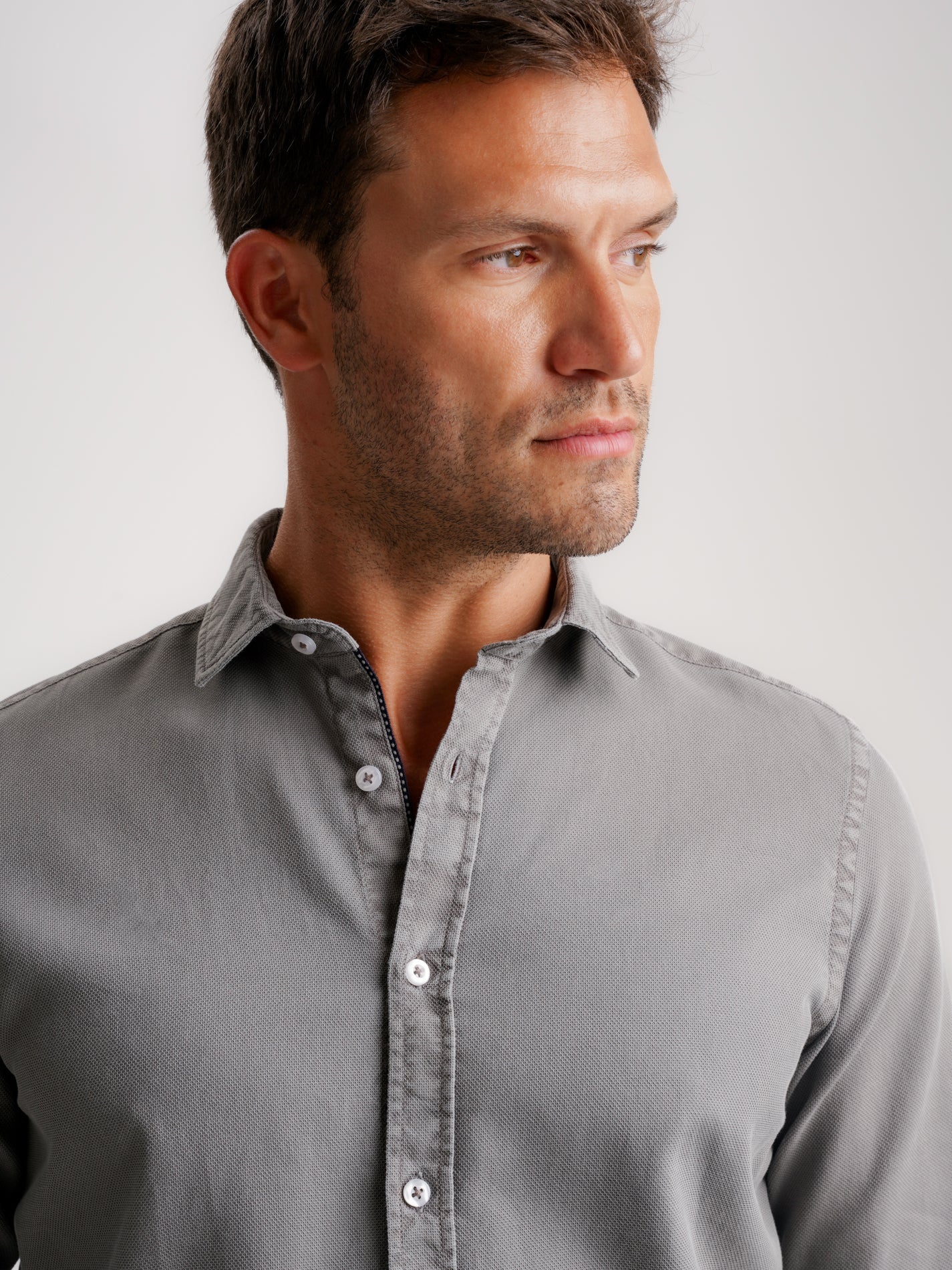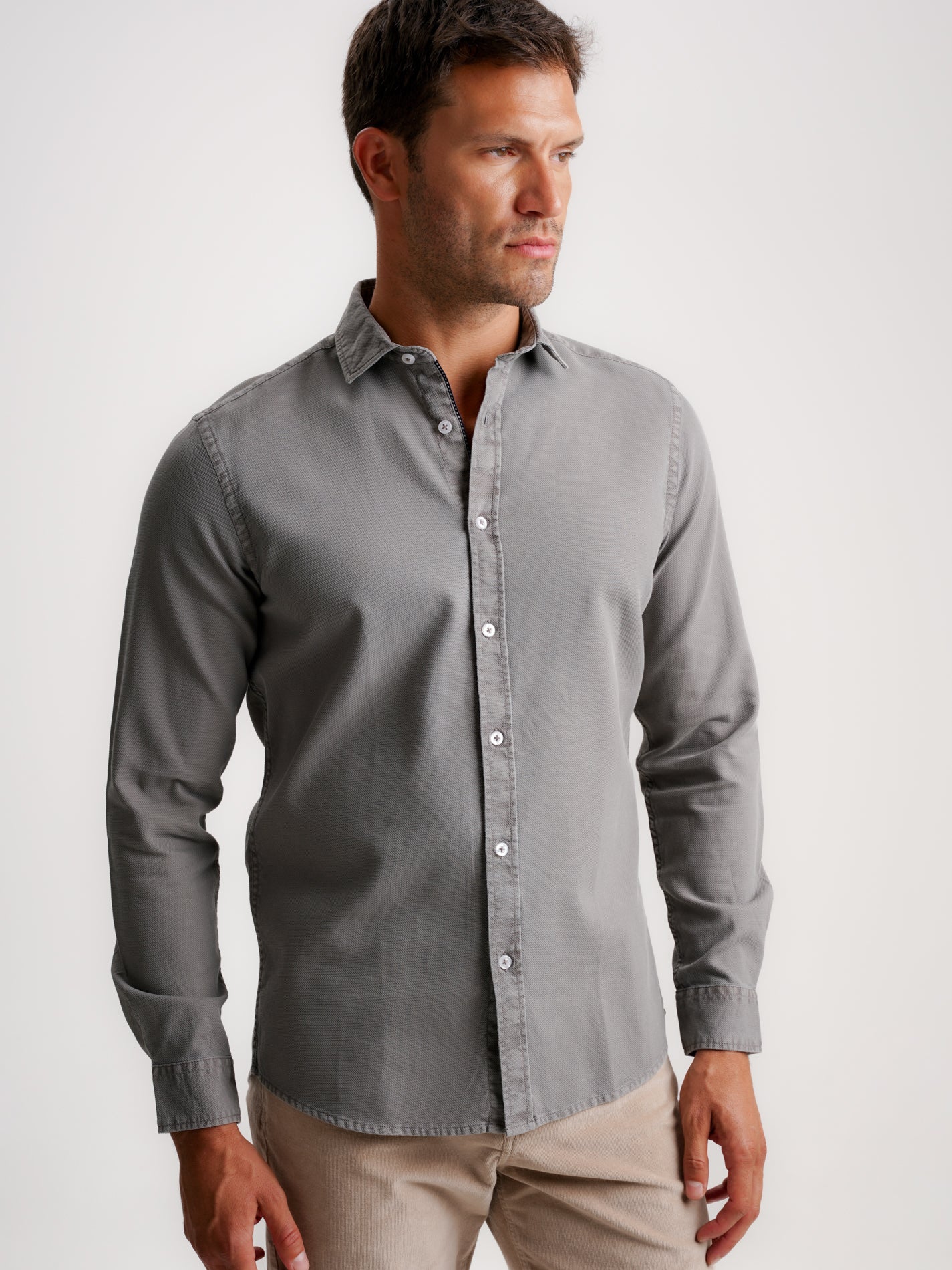 Camisa Tailored Fit Estruturada Cinzenta
