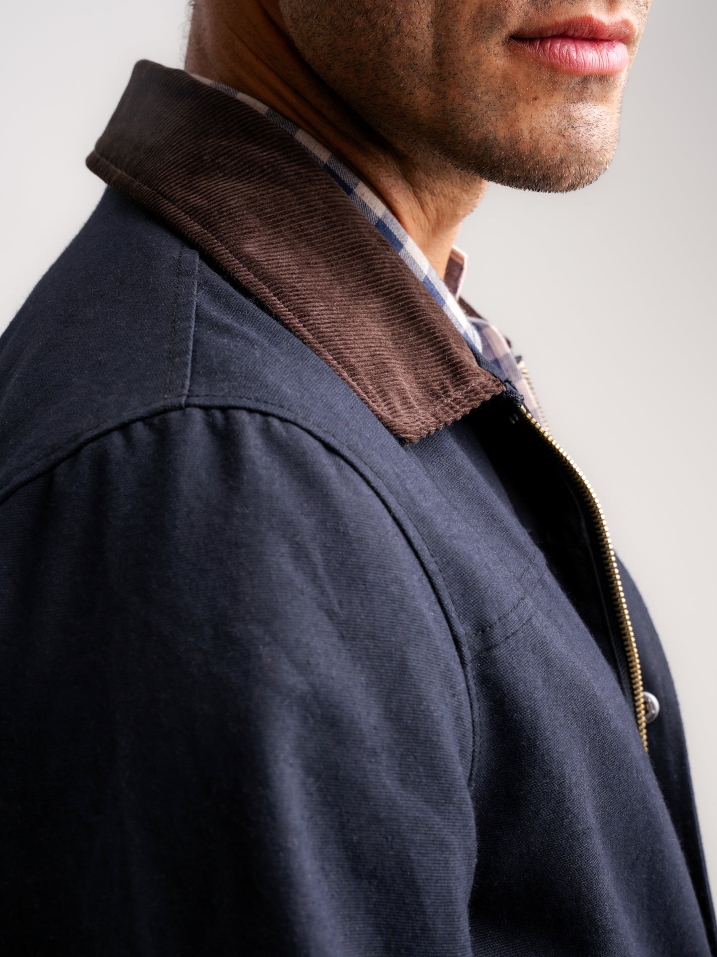Sobretudo Azul Curto De Algodão