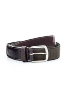 Cinto elástico verde escuro beje com fivela prateada